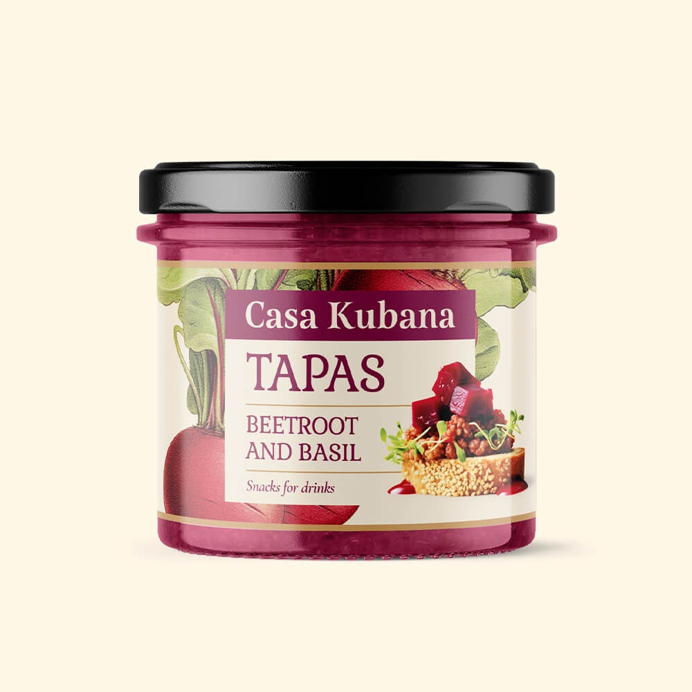Drinking water, refined deodorized sunflower oil, beetroot puree, chickpeas, dried beetroot, sesame paste, lemon juice, food sea salt, dried basil, ground coriander, dried garlic, ground black pepper, ground cumin.