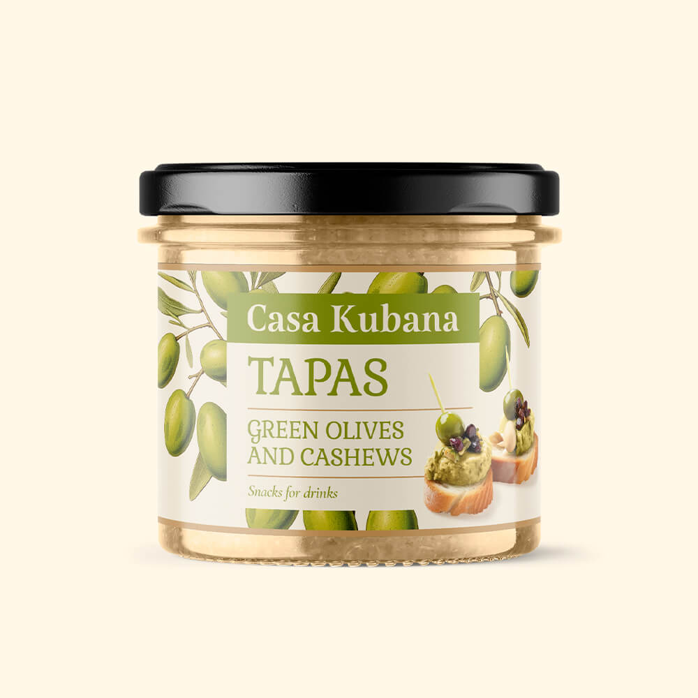 Pitted green olives (olives, water, salt), drinking water, refined deodorized sunflower oil, chickpeas, cashew paste, food sea salt, dried garlic, lemon juice, ground black pepper, ground red pepper.