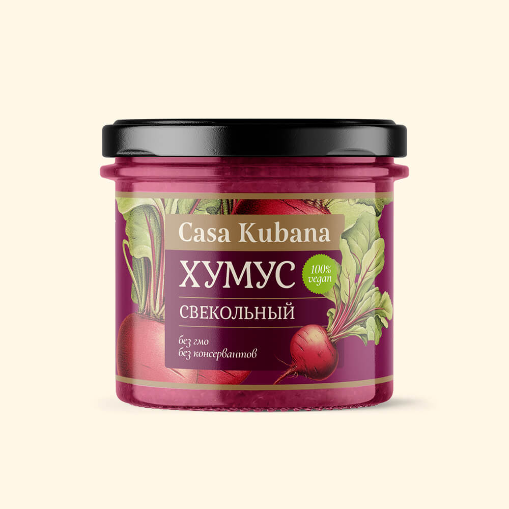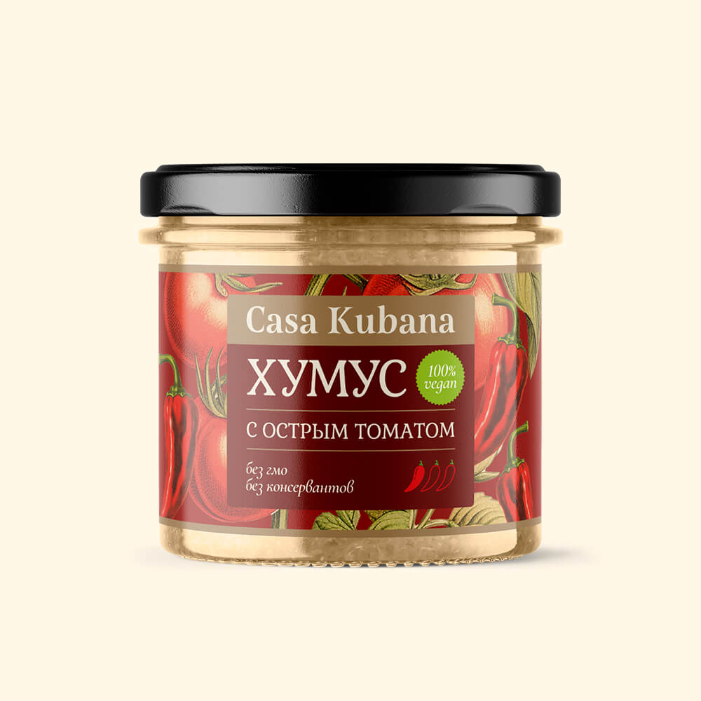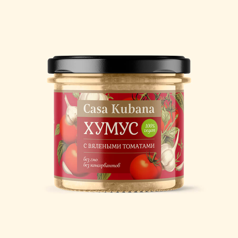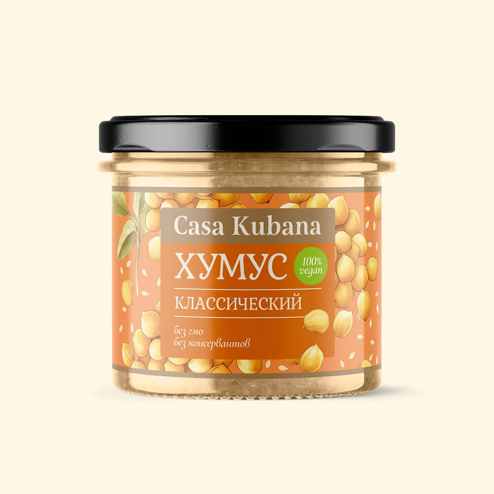 Нут, вода питьевая, масло подсолнечное рафинированное дезодорированное, тахини (кунжутная паста), экстракт дрожжевой, соль морская пищевая, чеснок сушёный, загуститель (камедь гуаровая), кумин, перец красный острый сушёный, куркума.