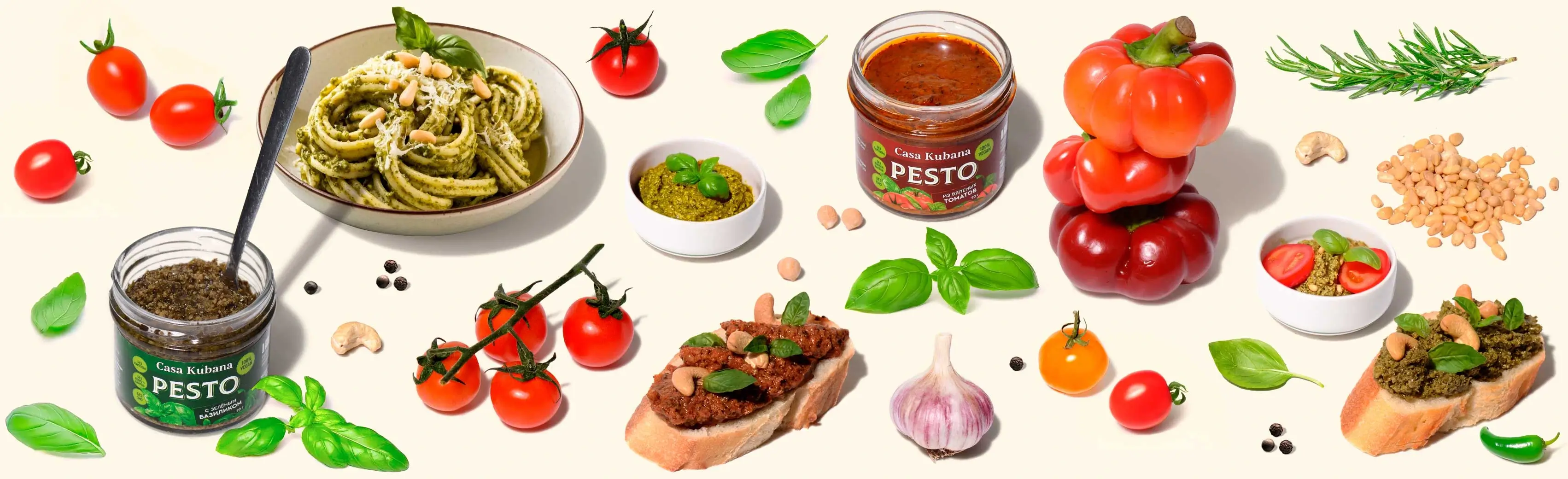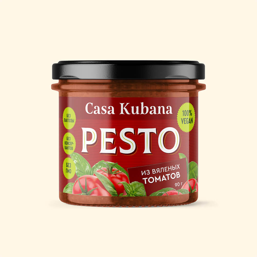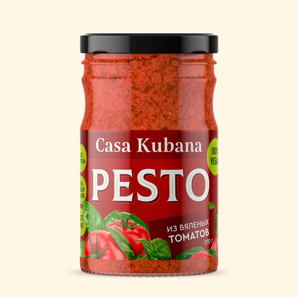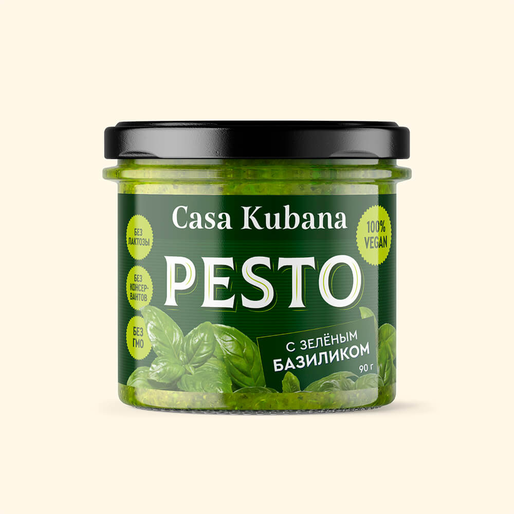 Масло подсолнечное рафинированное дезодорированное, базилик свежий, вода питьевая, ядра орехов кешью, пюре картофельное сухое, дрожжевой экстракт, соль морская пищевая, натуральное пищевое волокно, масло оливковое нерафинированное высшего качества (Extra virgin olive oil), чеснок сушёный, ядра кедрового ореха, регуляторы кислотности (лимонная кислота, молочная кислота).